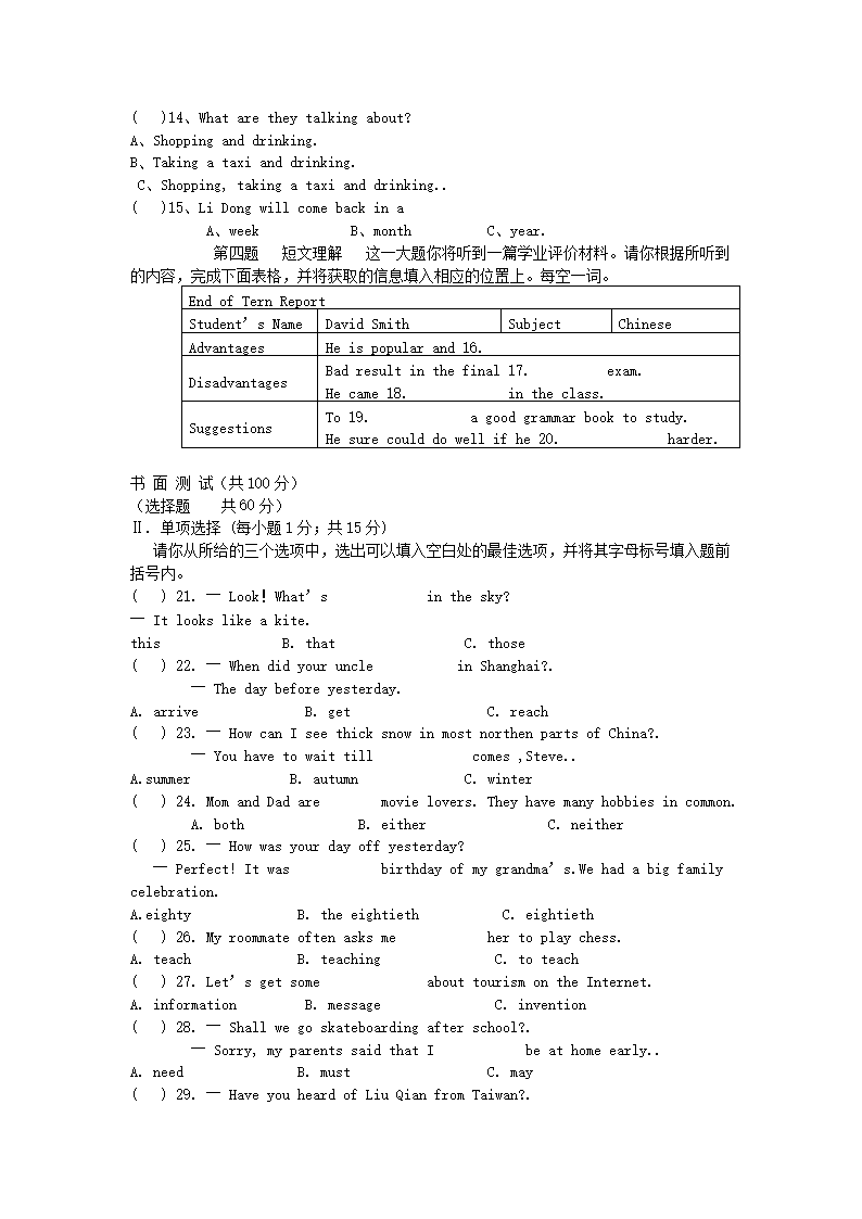 【文档名称】 2009年山西省太原中考英语真题及答案(Word版).doc