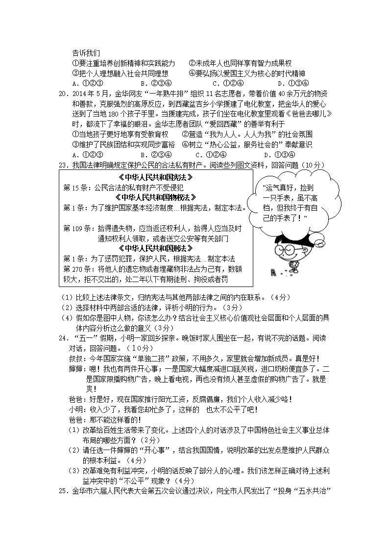 【文档名称】 2014浙江省金华市中考道德与法治真题及答案(Word版).doc