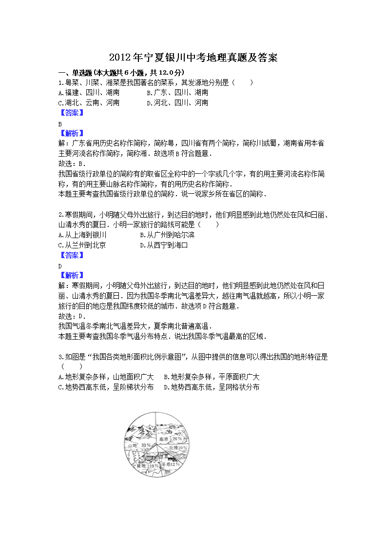 【文档预览】 无忧考网整理发布2012年宁夏银川中考地理真题及答案(Word版),前五页预览如下: