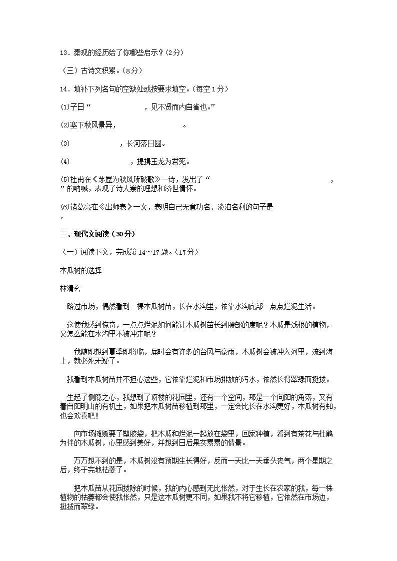 【文档名称】 2014年江西赣州中考语文真题及答案(Word版).doc