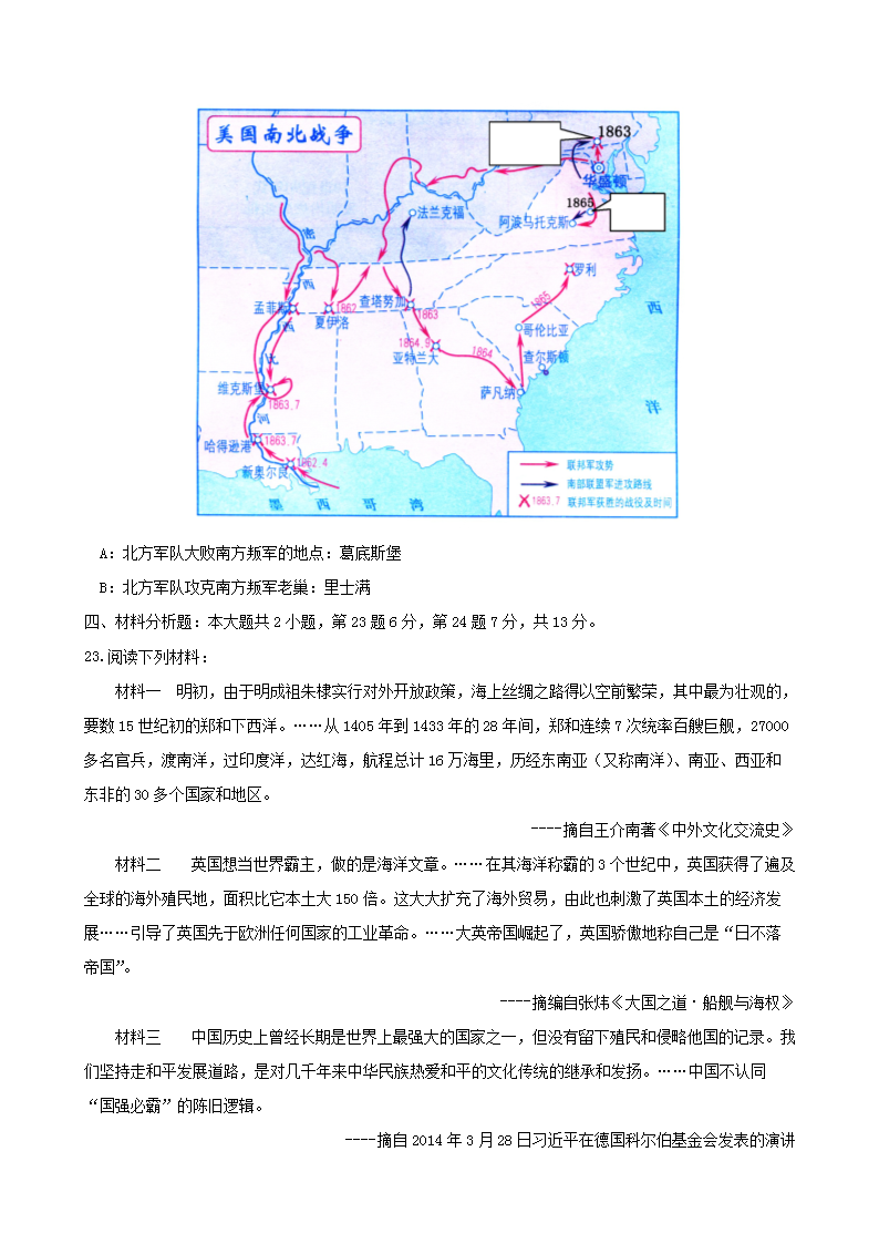 【文档名称】 2014年重庆巴南中考历史真题及答案A卷(Word版).doc