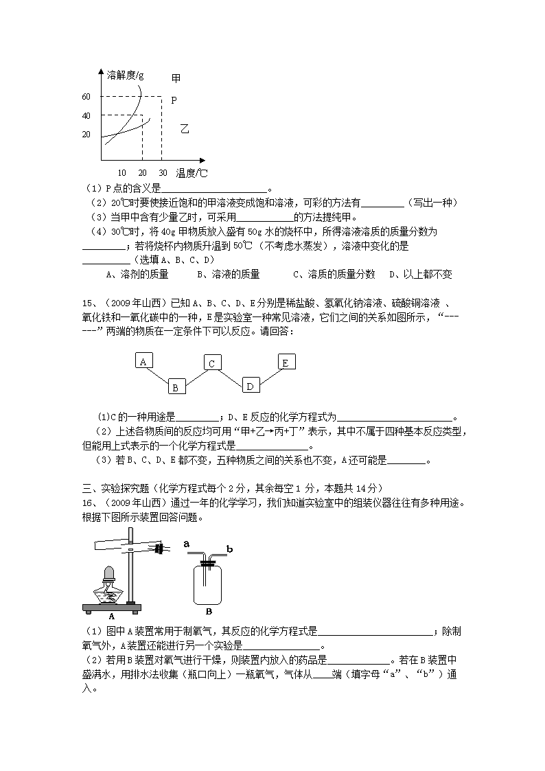 【文档名称】 2009年山西省忻州中考化学真题及答案(Word版).doc