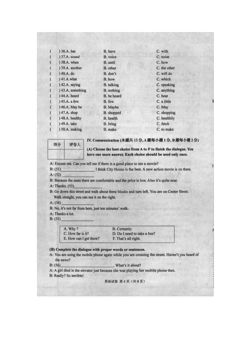 【文档预览】 无忧考网整理发布2013年黑龙江七台河中考英语真题及答案(图片版),前五页预览如下: