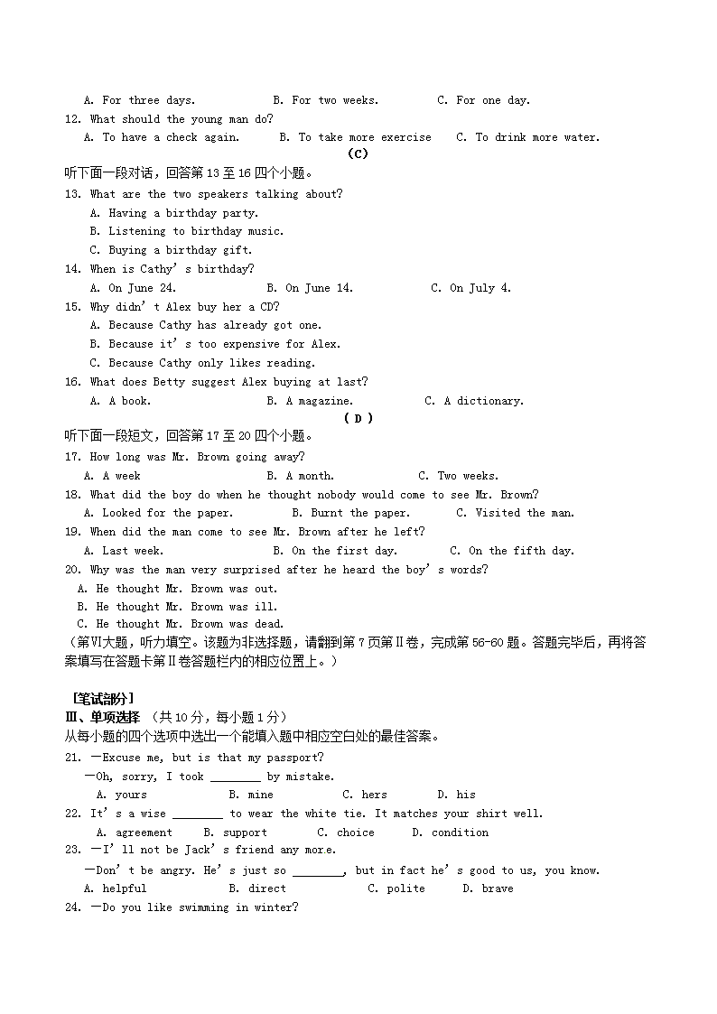 【文档名称】 2014年湖北省荆州市中考英语真题及答案(Word版).doc