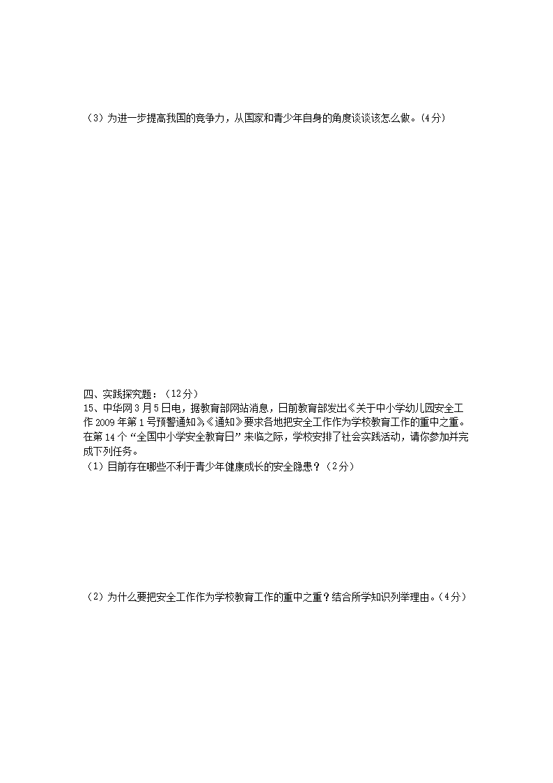 【文档名称】 2009年山西省大同中考政治真题及答案(Word版).doc