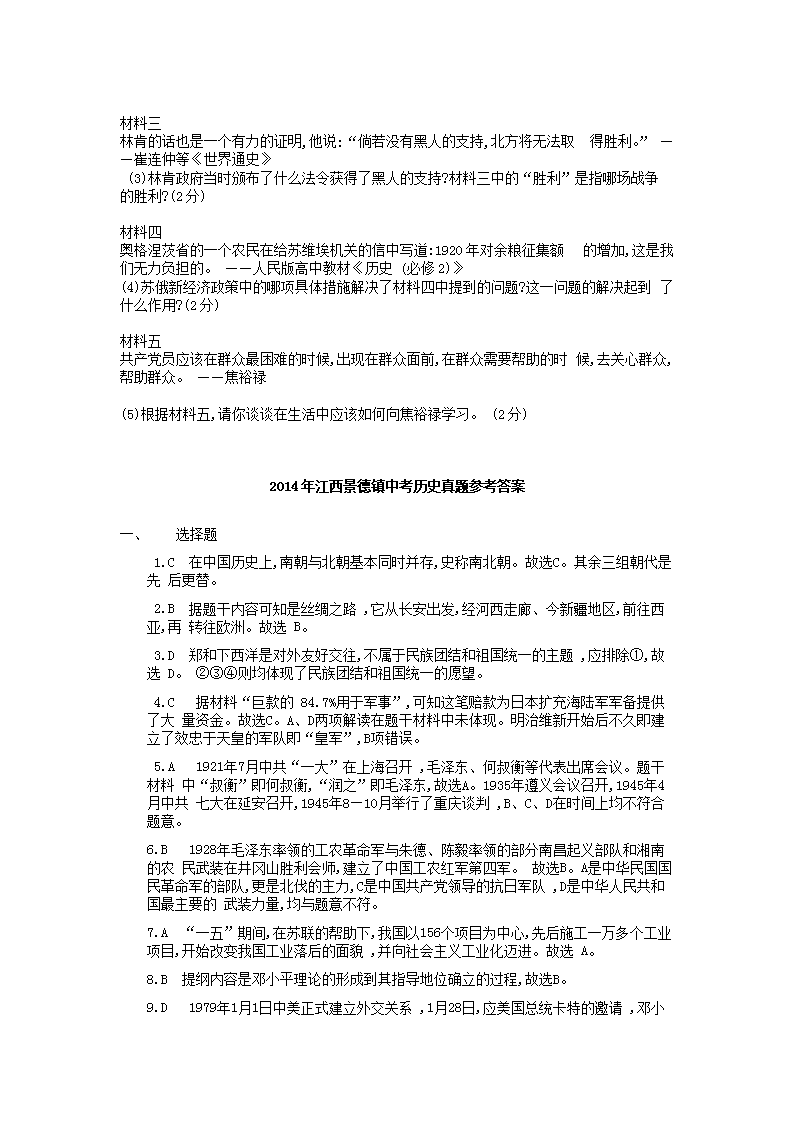 【文档名称】 2014年江西景德镇中考历史真题及答案(Word版).doc