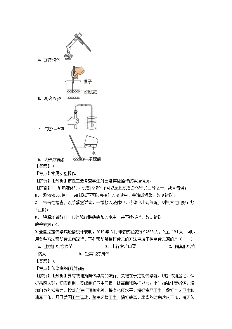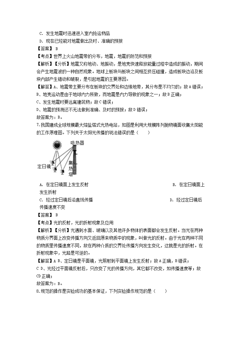 【文档名称】 2019浙江省金华市中考科学真题及答案(Word版).doc