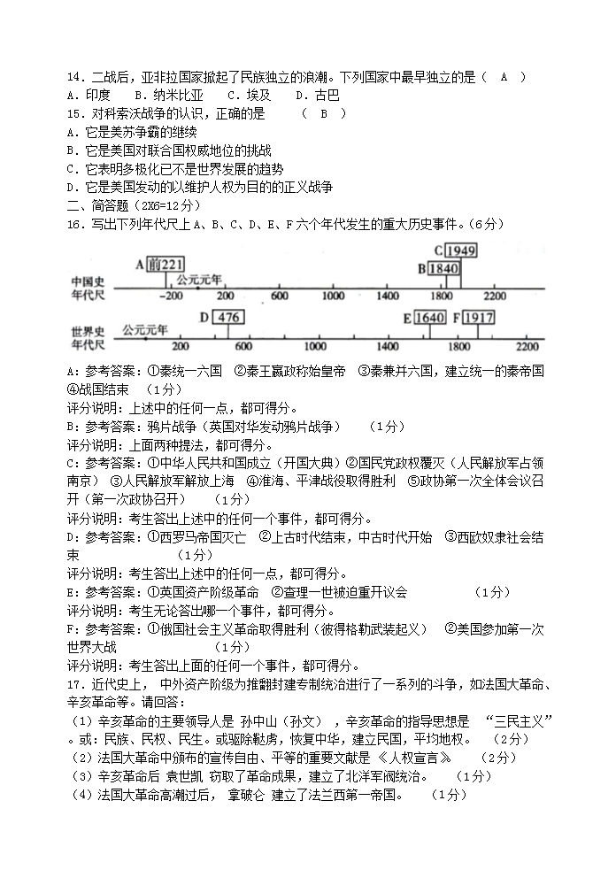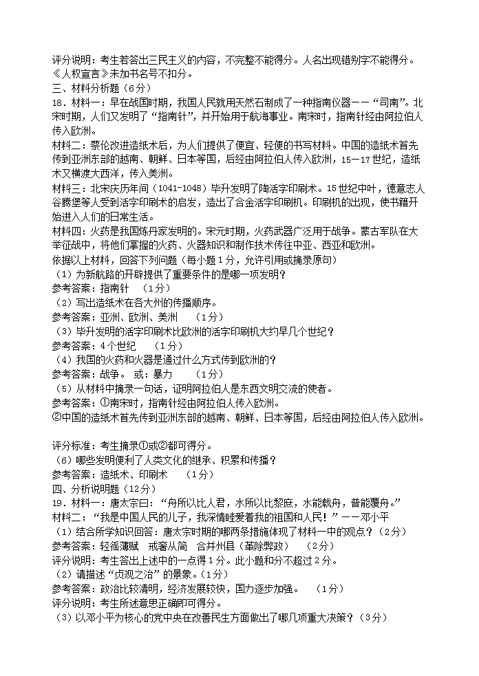 【文档名称】 2009年山西省太原中考历史真题及答案(Word版).doc