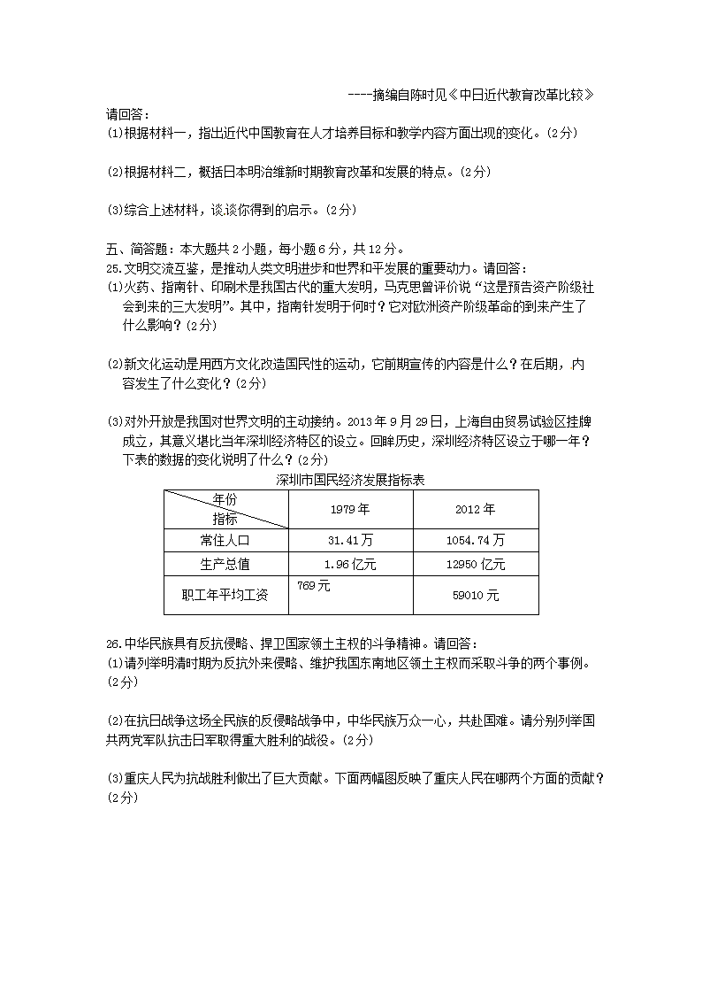 【文档名称】 2014年重庆江津中考历史真题及答案B卷(Word版).doc