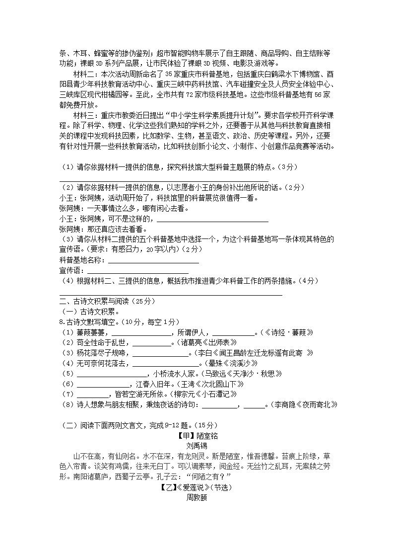 【文档名称】 2013年重庆九龙坡中考语文真题及答案A卷(Word版).doc