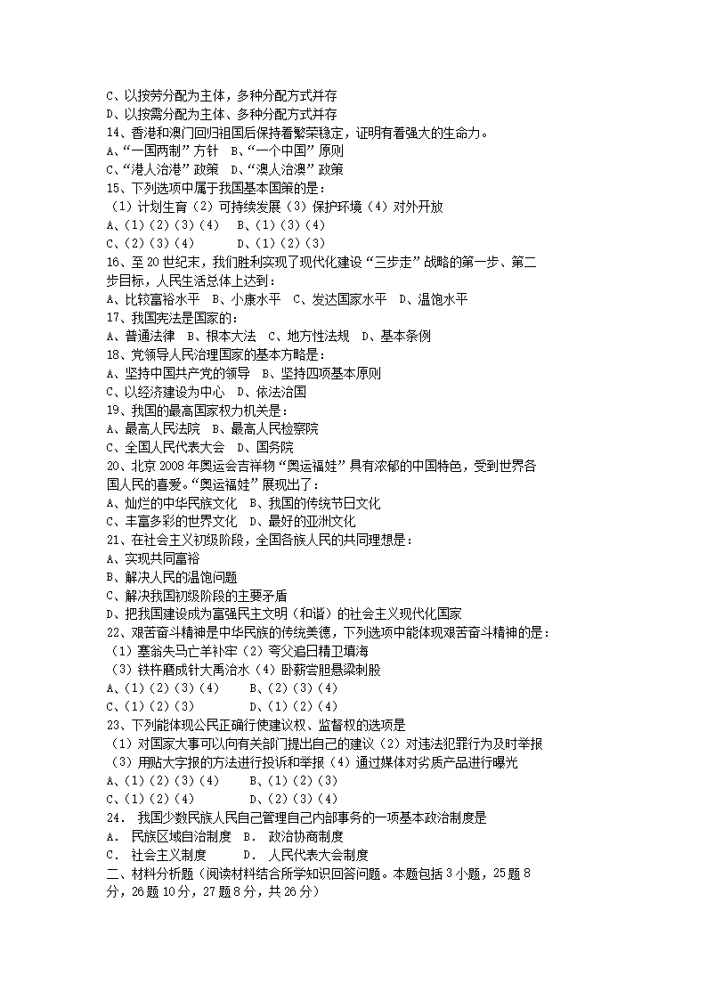【文档名称】 2008年辽宁省辽阳市中考政治真题及答案(Word版).doc