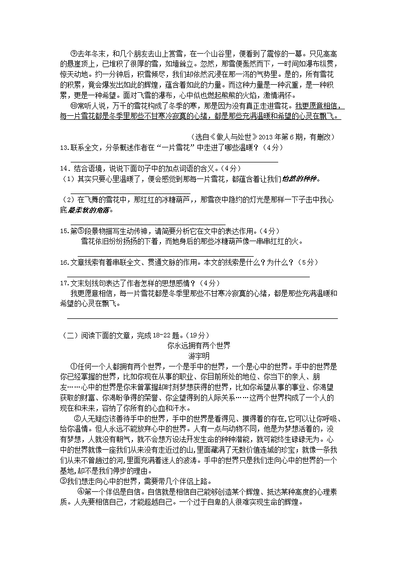 【文档名称】 2013年重庆南岸中考语文真题及答案A卷(Word版).doc