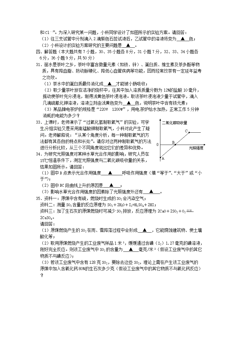 【文档名称】 2015浙江省丽水市中考化学真题及答案(Word版).doc