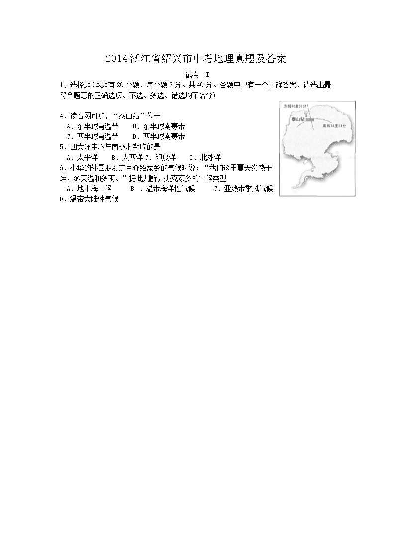 【文档预览】 无忧考网整理发布2014浙江省绍兴市中考地理真题及答案(Word版),前五页预览如下: