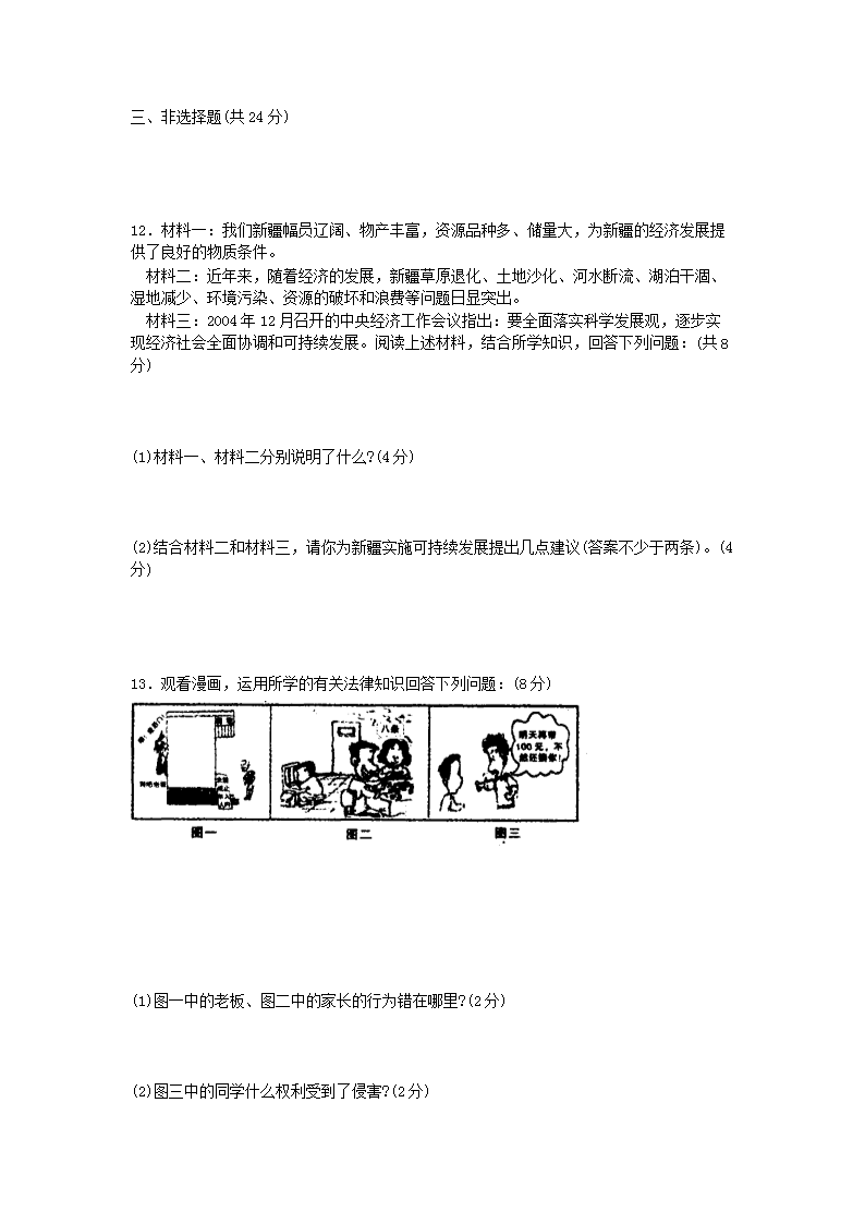 【文档预览】 无忧考网整理发布2005年新疆兵团中考道德与法治真题及答案(Word版),前五页预览如下: