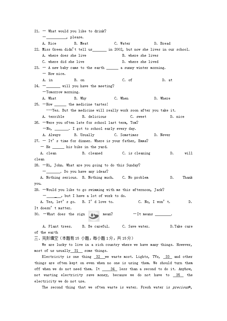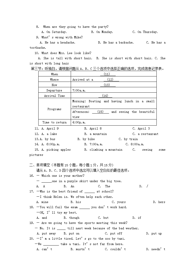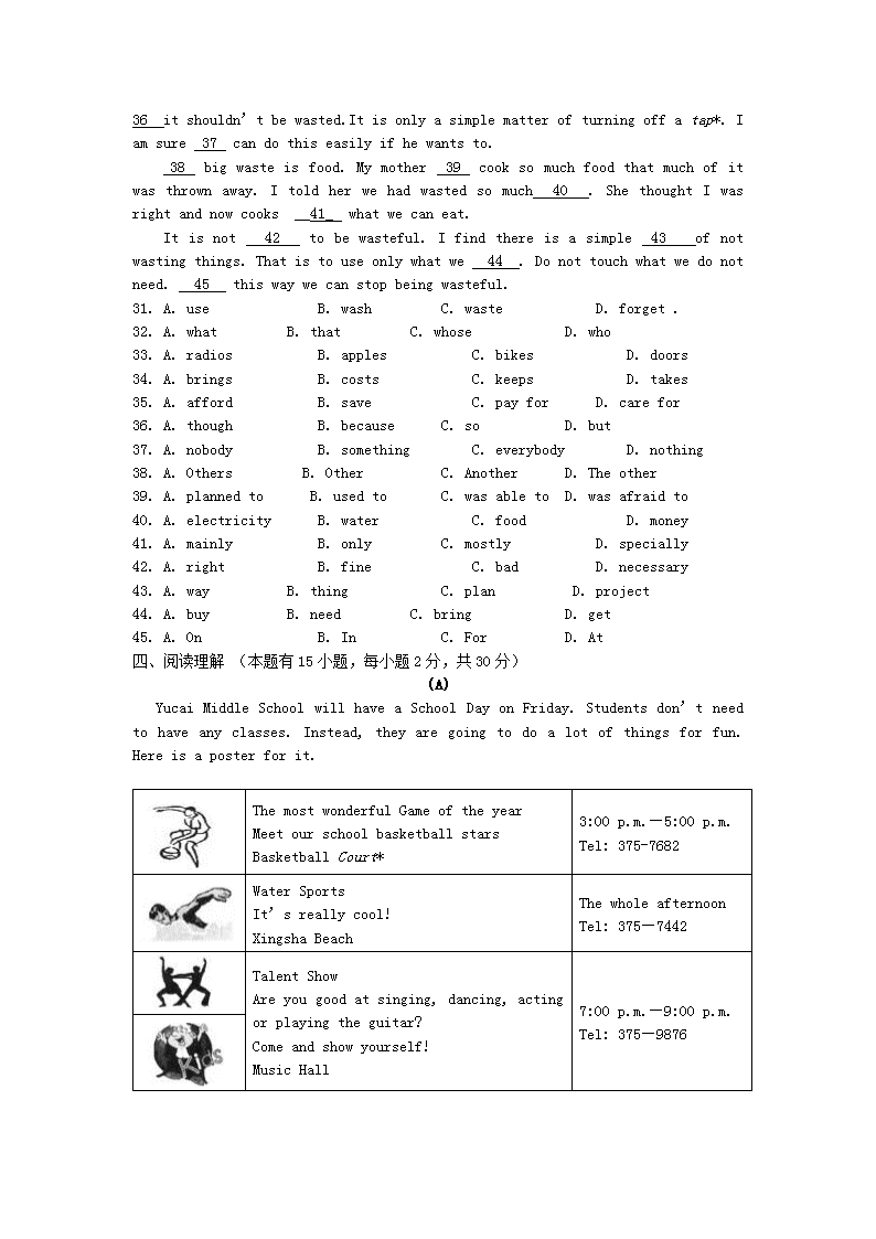 【文档预览】 无忧考网整理发布2009年新疆兵团中考英语真题及答案(Word版),前五页预览如下: