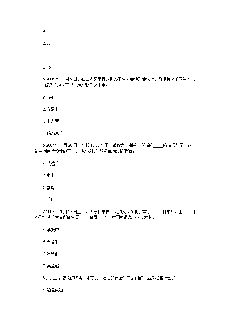【文档名称】 2007年辽宁省鞍山市中考政治真题及答案(实验区)(Word版).doc