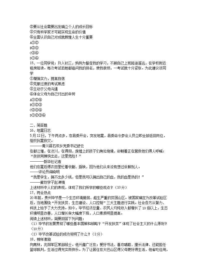 【文档名称】 2008年山西省大同中考政治真题及答案(Word版).doc