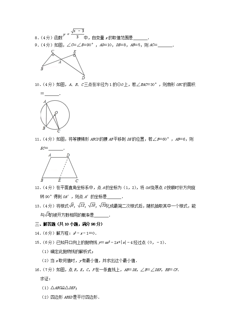【文档名称】 2007年新疆兵团中考数学真题及答案(Word版).doc