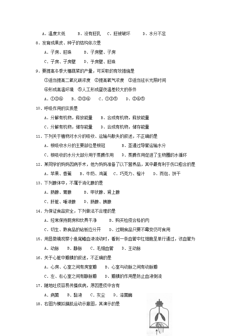 【文档名称】 2013年云南楚雄中考生物真题及答案(Word版).doc