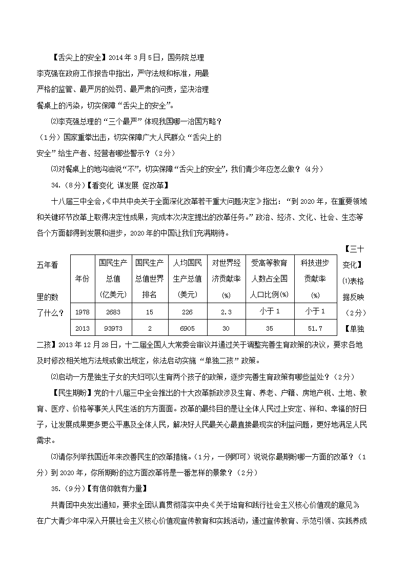 【文档名称】 2014年湖北省潜江市中考政治真题及答案(Word版).doc
