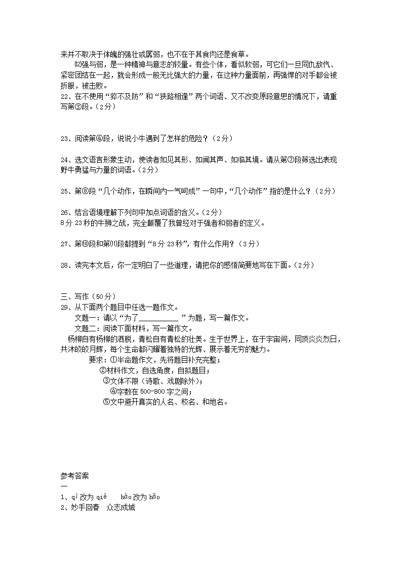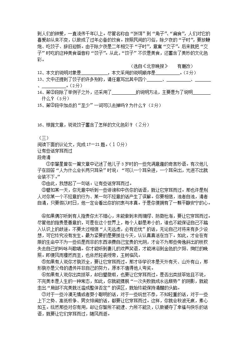 【文档预览】 无忧考网整理发布2008年山西省阳泉中考语文真题及答案(Word版),前五页预览如下: