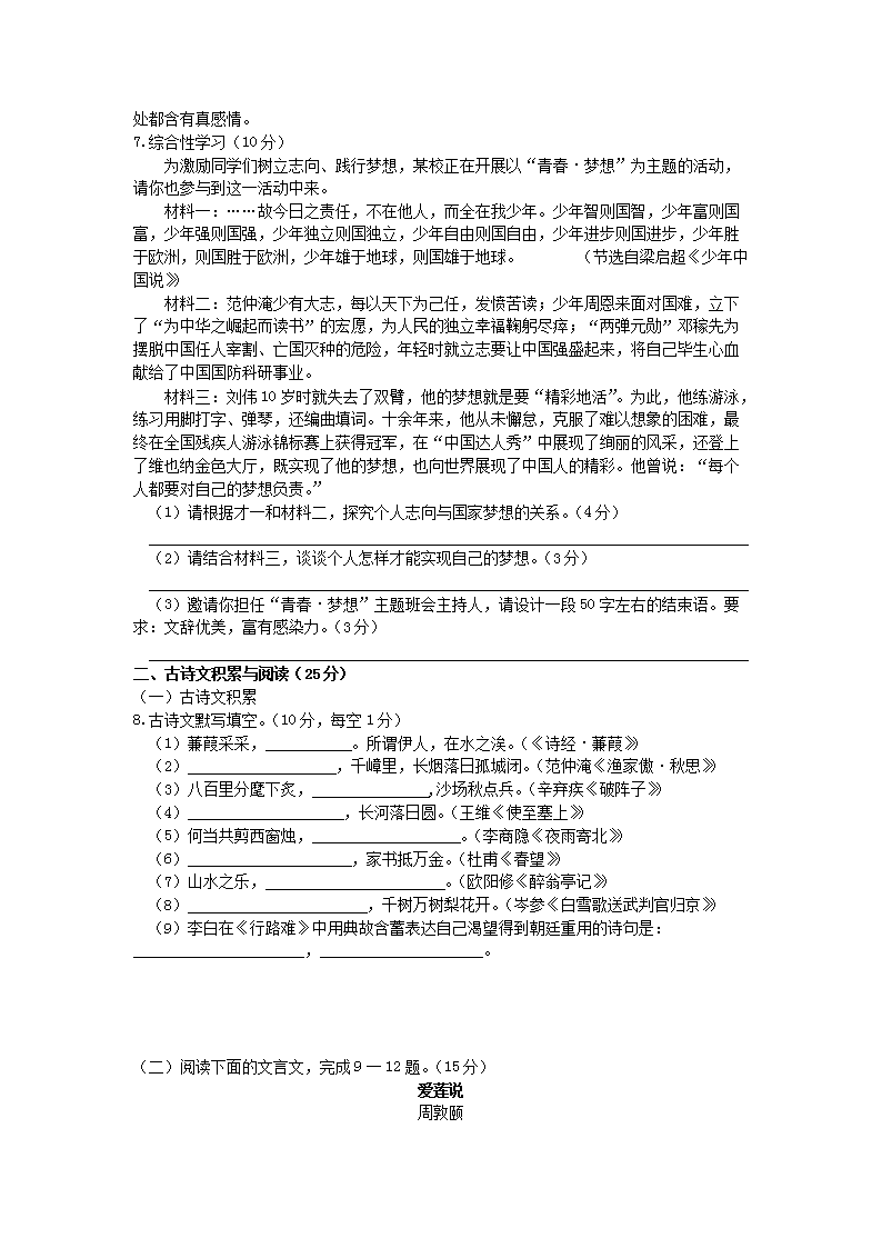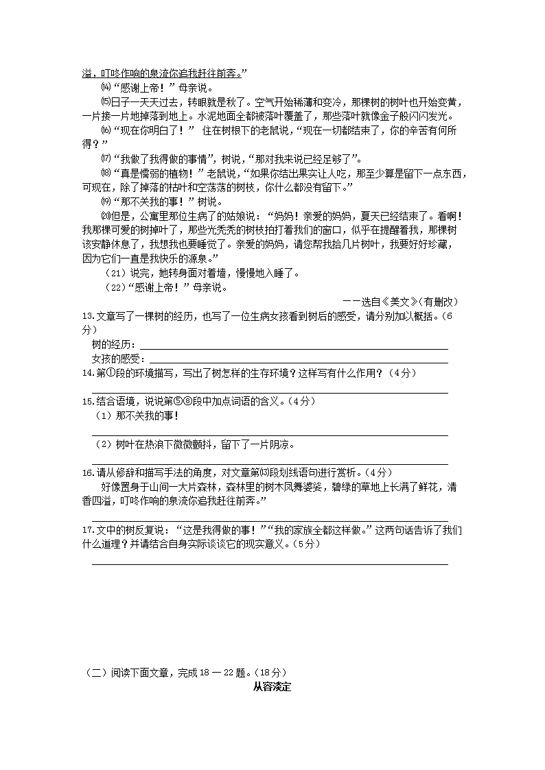 【文档预览】 无忧考网整理发布2013年重庆长寿中考语文真题及答案B卷(Word版),前五页预览如下: