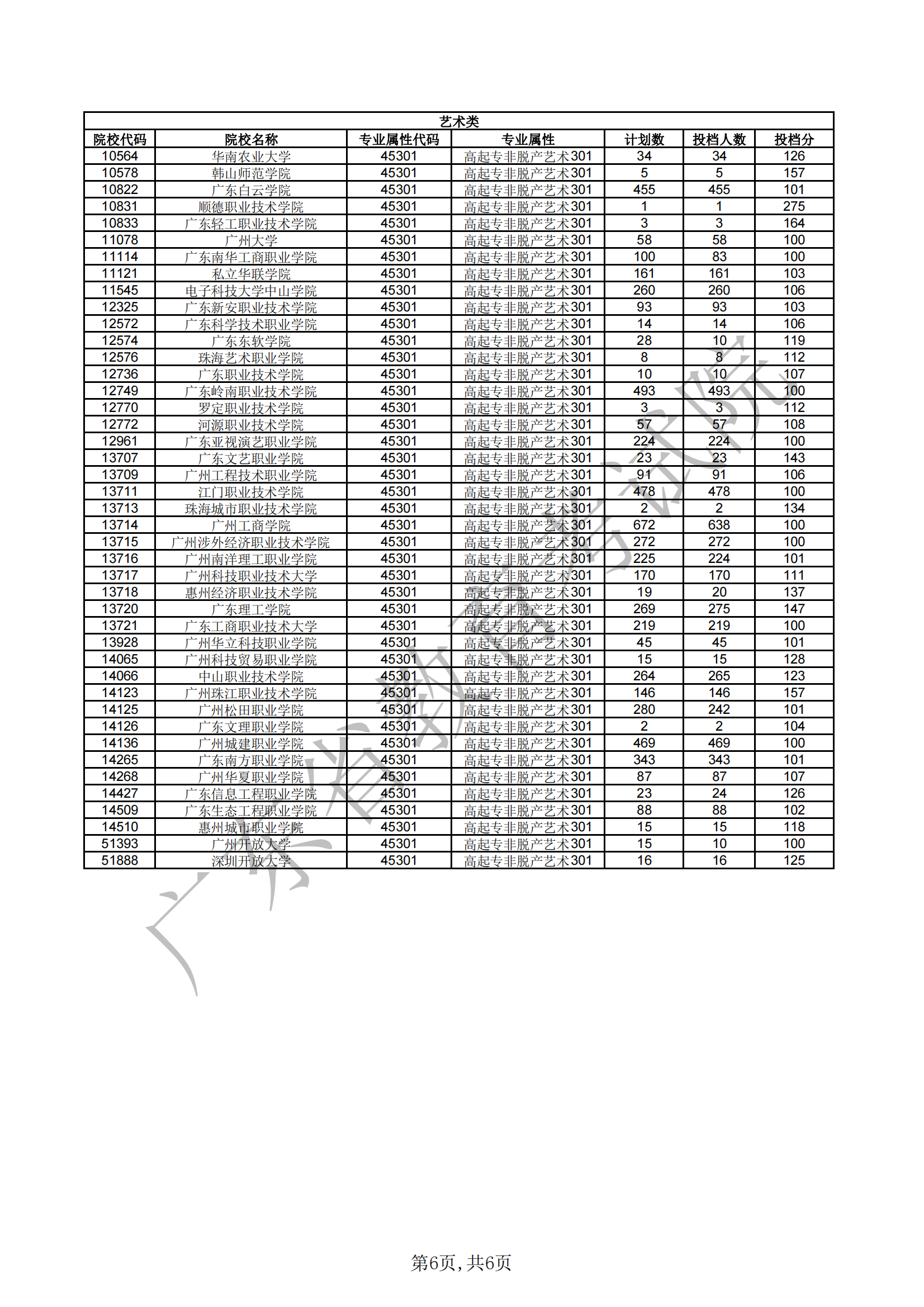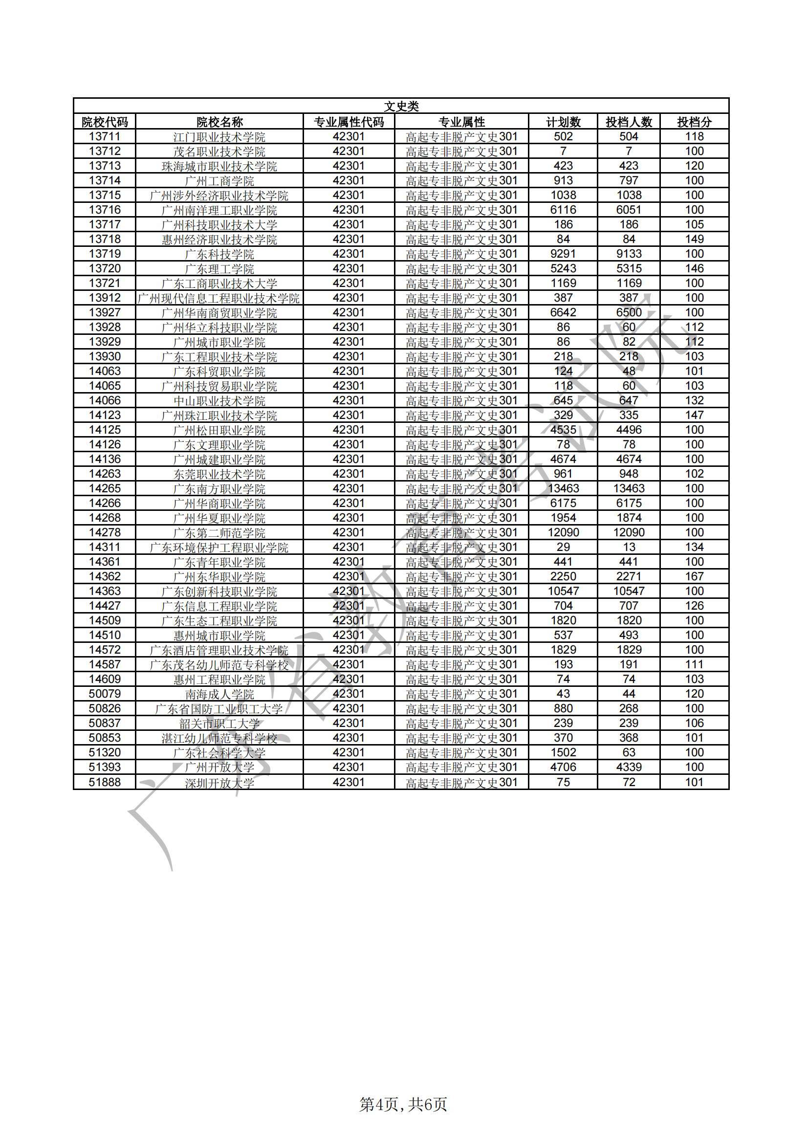 广东省2021年成人高考高中起点专科非脱产院校第一志愿投档情