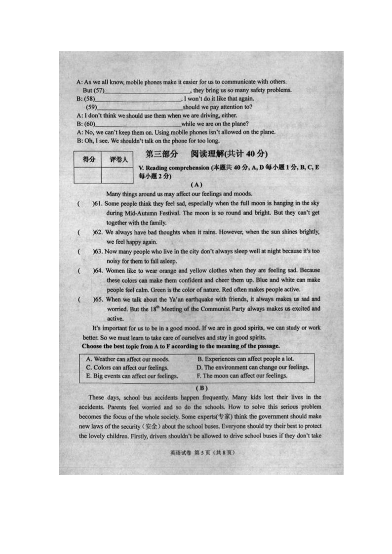 【文档预览】 无忧考网整理发布2013年黑龙江伊春中考英语真题及答案(图片版),前五页预览如下: