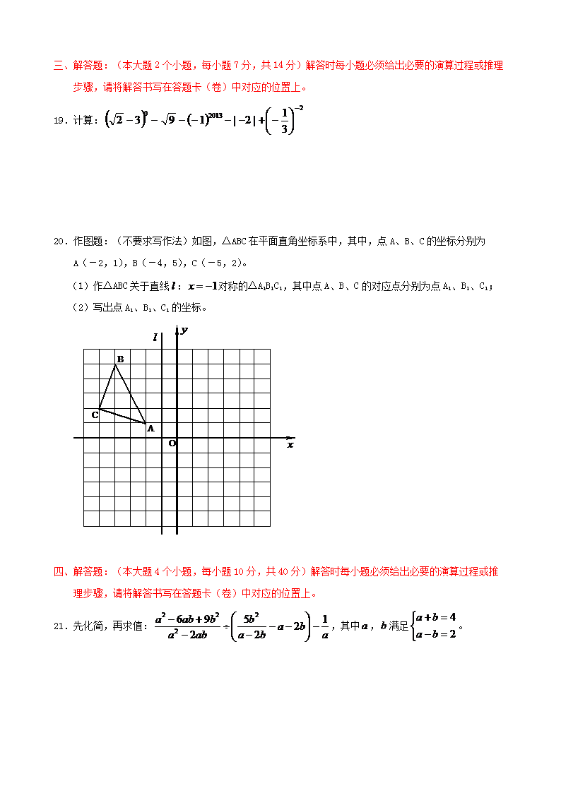 【文档预览】 无忧考网整理发布2013年重庆巴南中考数学真题及答案A卷(Word版),前五页预览如下: