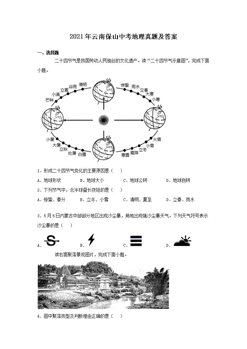 【文档名称】 2021年云南保山中考地理真题及答案(Word版).doc