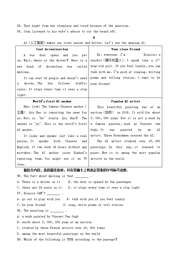 【文档名称】 2019年广西防城港市中考英语真题及答案(Word版).doc