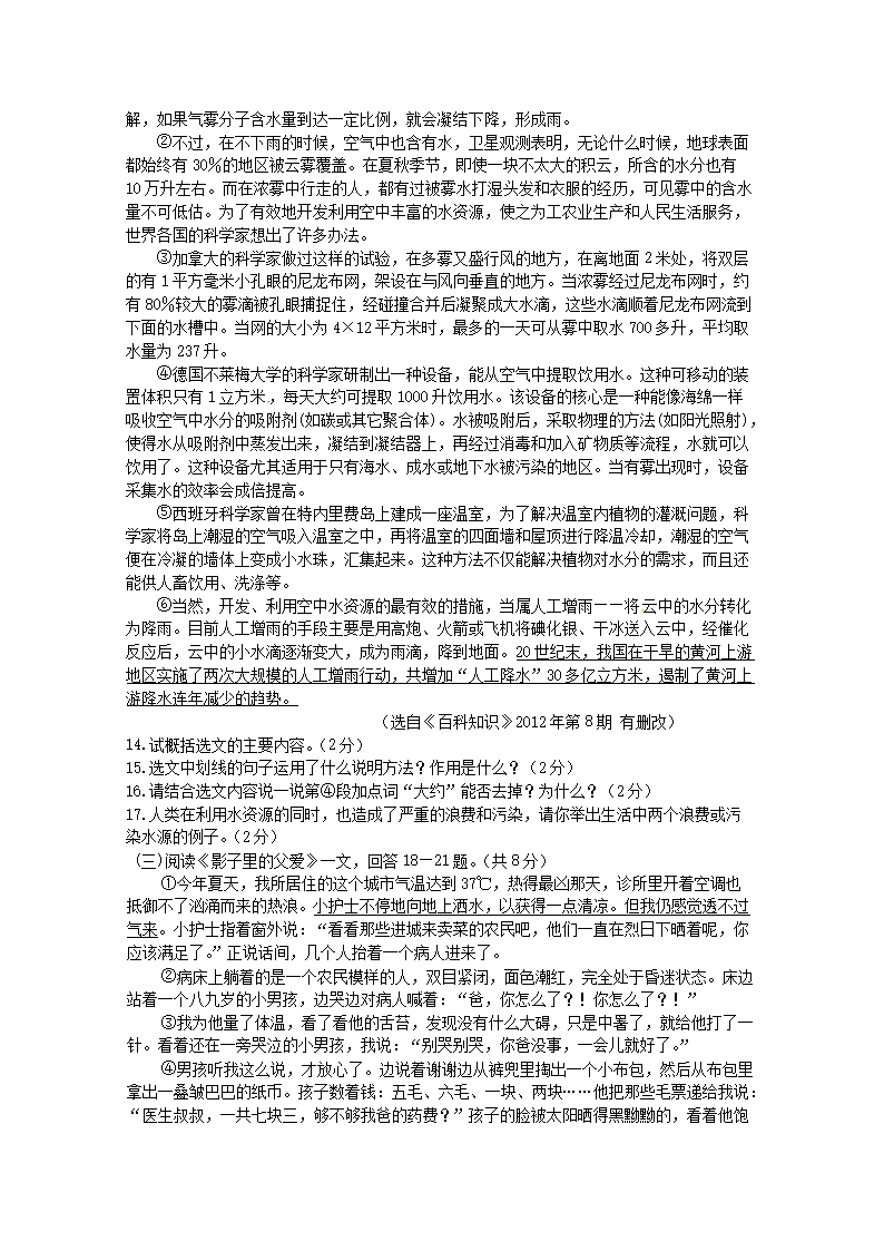【文档预览】 无忧考网整理发布2012年黑龙江绥化市中考语文真题及答案(Word版),前五页预览如下: