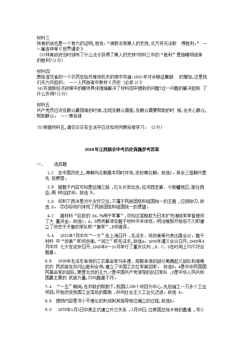 【文档名称】 2014年江西新余中考历史真题及答案(Word版).doc