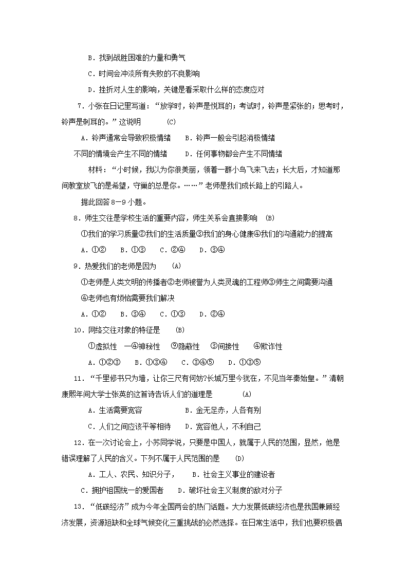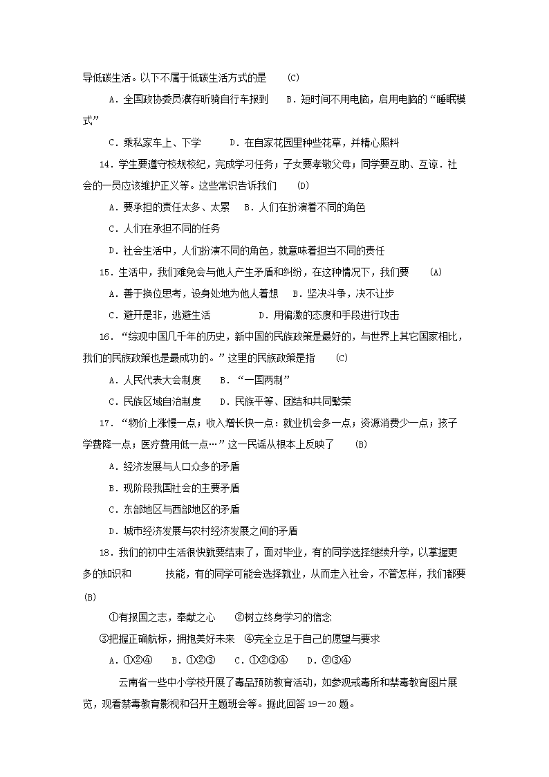 【文档名称】 2010年云南文山中考道德与法治真题及答案(Word版).doc