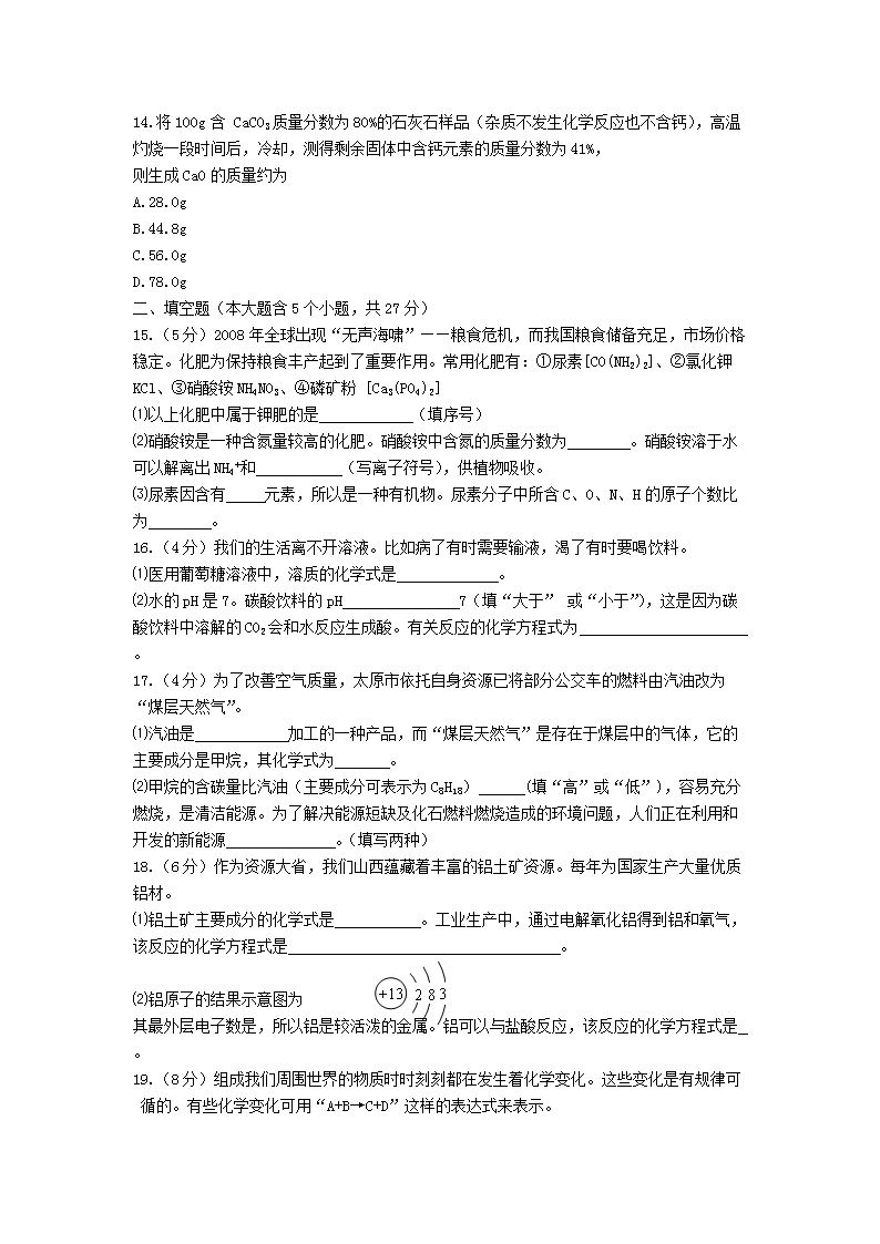【文档名称】 2008年山西省吕梁中考化学真题及答案(Word版).doc