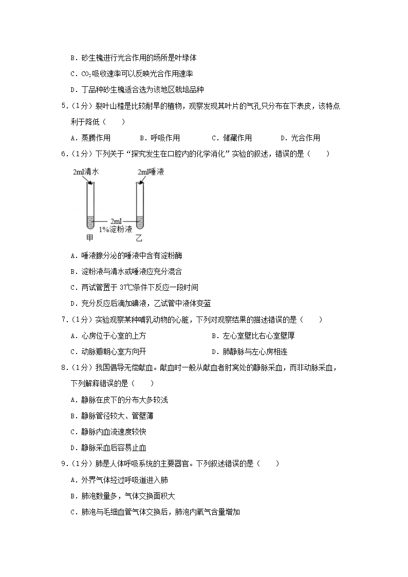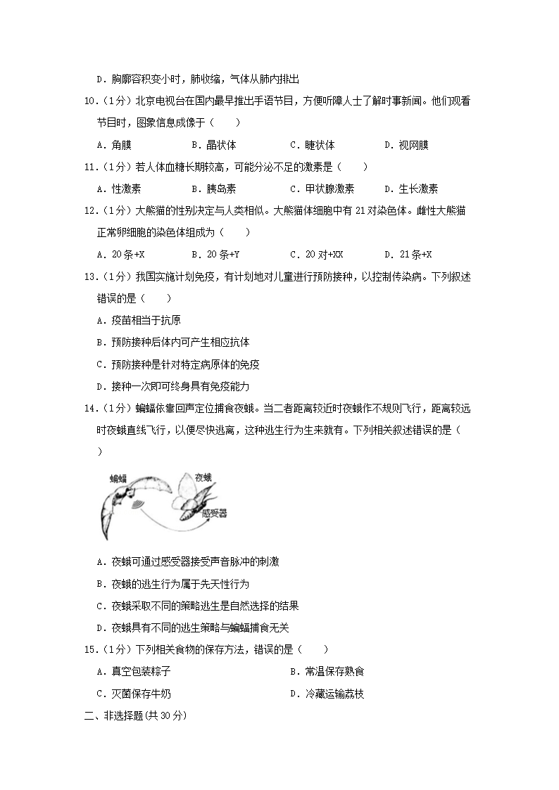 【文档名称】 2019北京门头沟中考生物真题及答案(Word版).doc