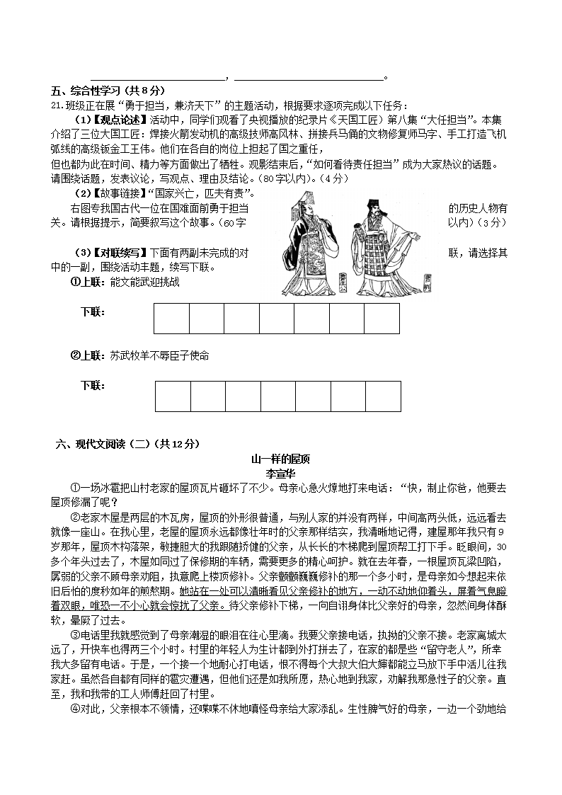 【文档预览】 无忧考网整理发布2018年广西钦州市中考语文真题及答案(Word版),前五页预览如下: