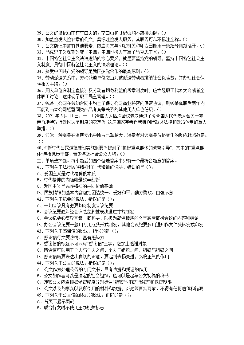 【文档预览】 无忧考网整理发布2021年四川省属事业单位考试综合知识真题及答案(Word版),前五页预览如下: