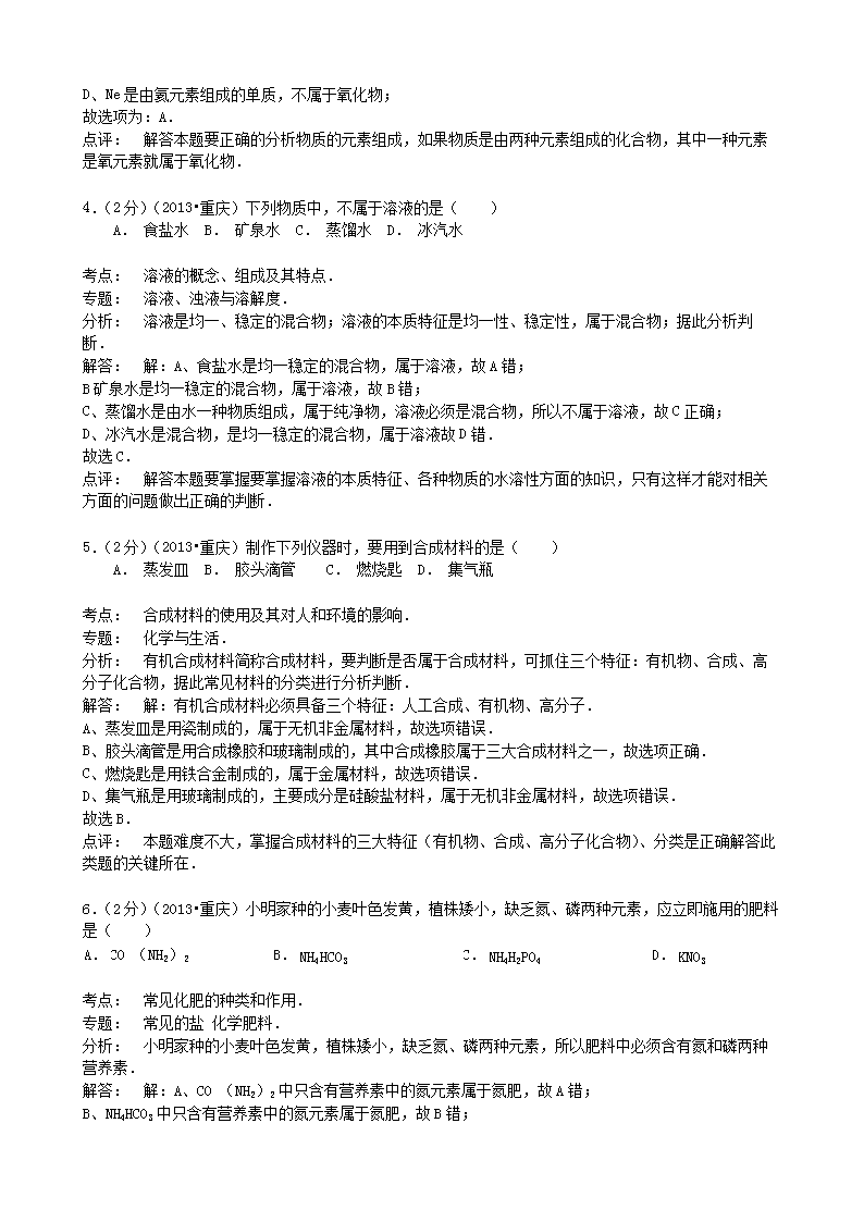 【文档名称】 2013年重庆合川中考化学真题及答案A卷(Word版).doc