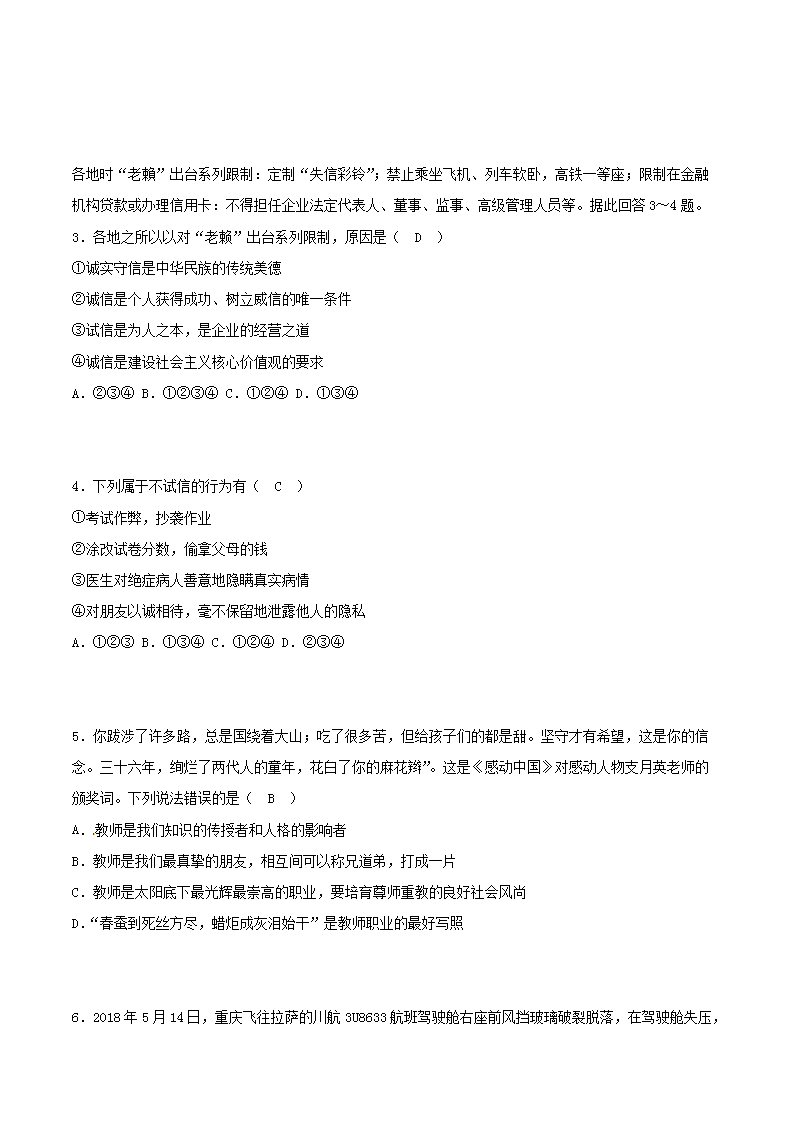 【文档名称】 2018年广西贺州市中考思想品德真题及答案(Word版).doc