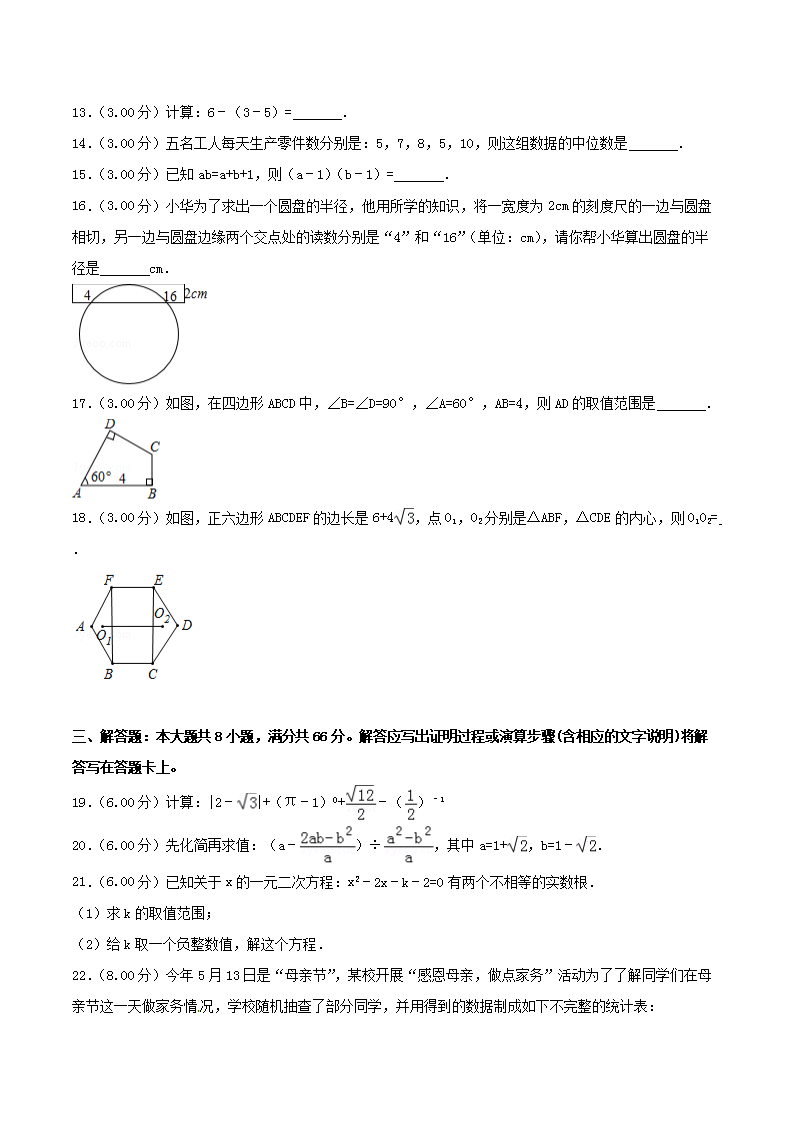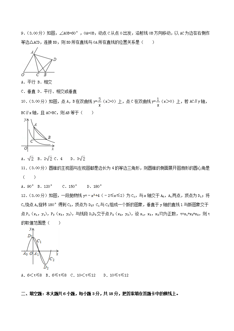 【文档名称】 2018年广西玉林市中考数学真题及答案(Word版).doc
