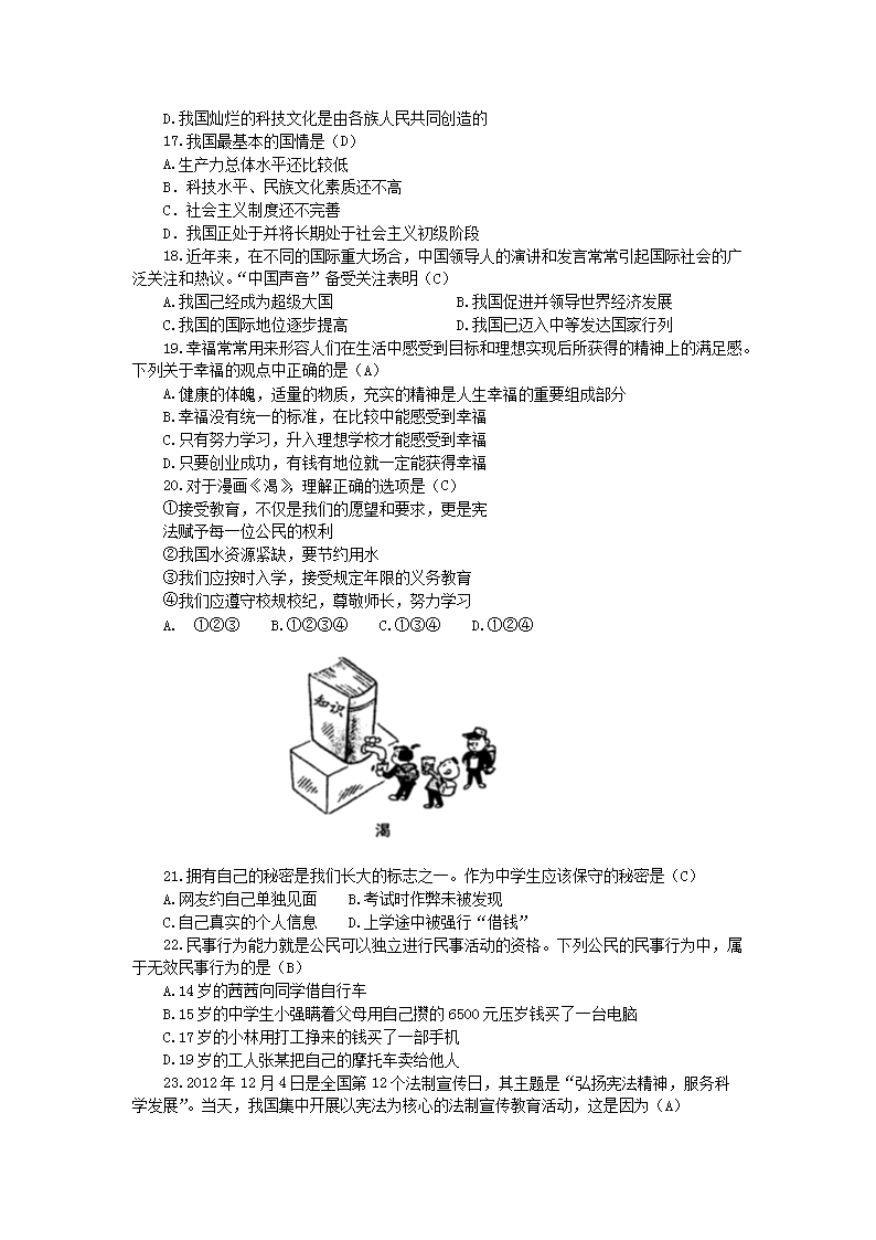 【文档名称】 2013年云南曲靖中考道德与法治真题及答案(Word版).doc