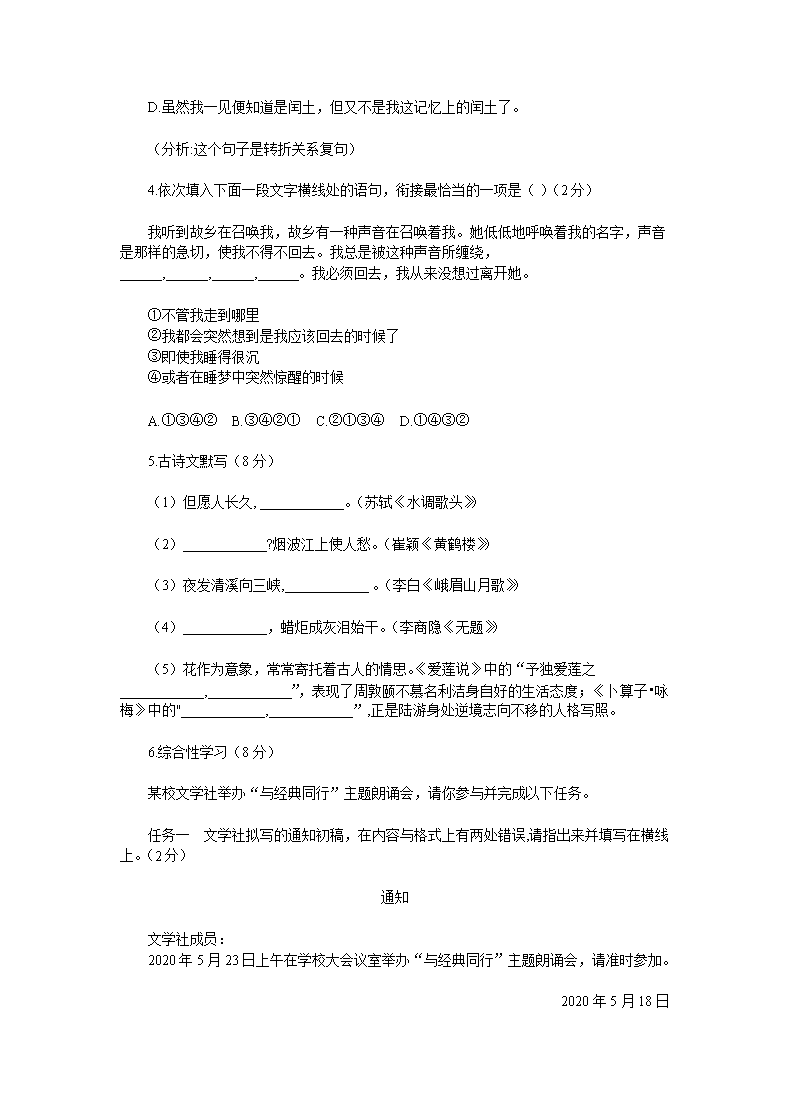 【文档名称】 2020年内蒙古兴安盟中考语文真题及答案(A)(Word版).doc