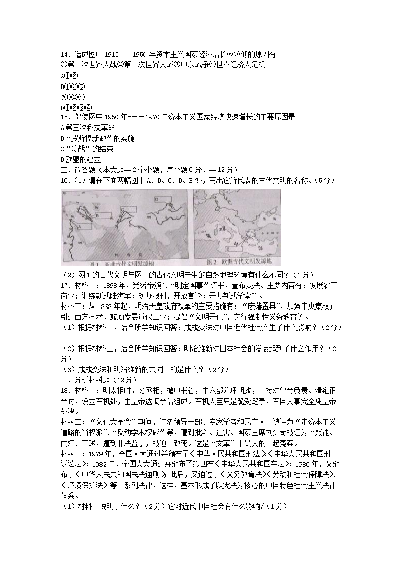 【文档名称】 2008年山西省忻州中考历史真题及答案(Word版).doc