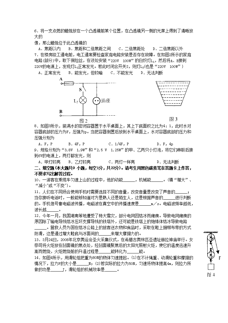 【文档名称】 2008年云南昆明中考物理真题及答案(Word版).doc