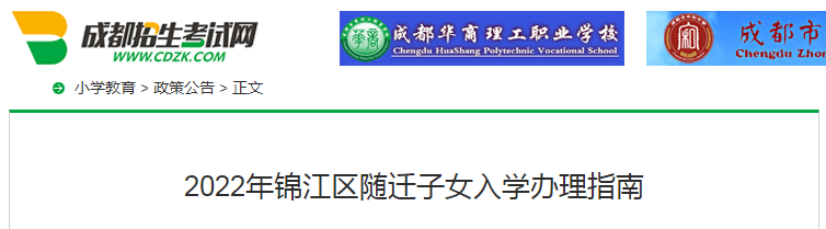 考网从河南招生考试信息网了解到,2022年四川成都锦江区随迁子女入学办理指南,具体如下: