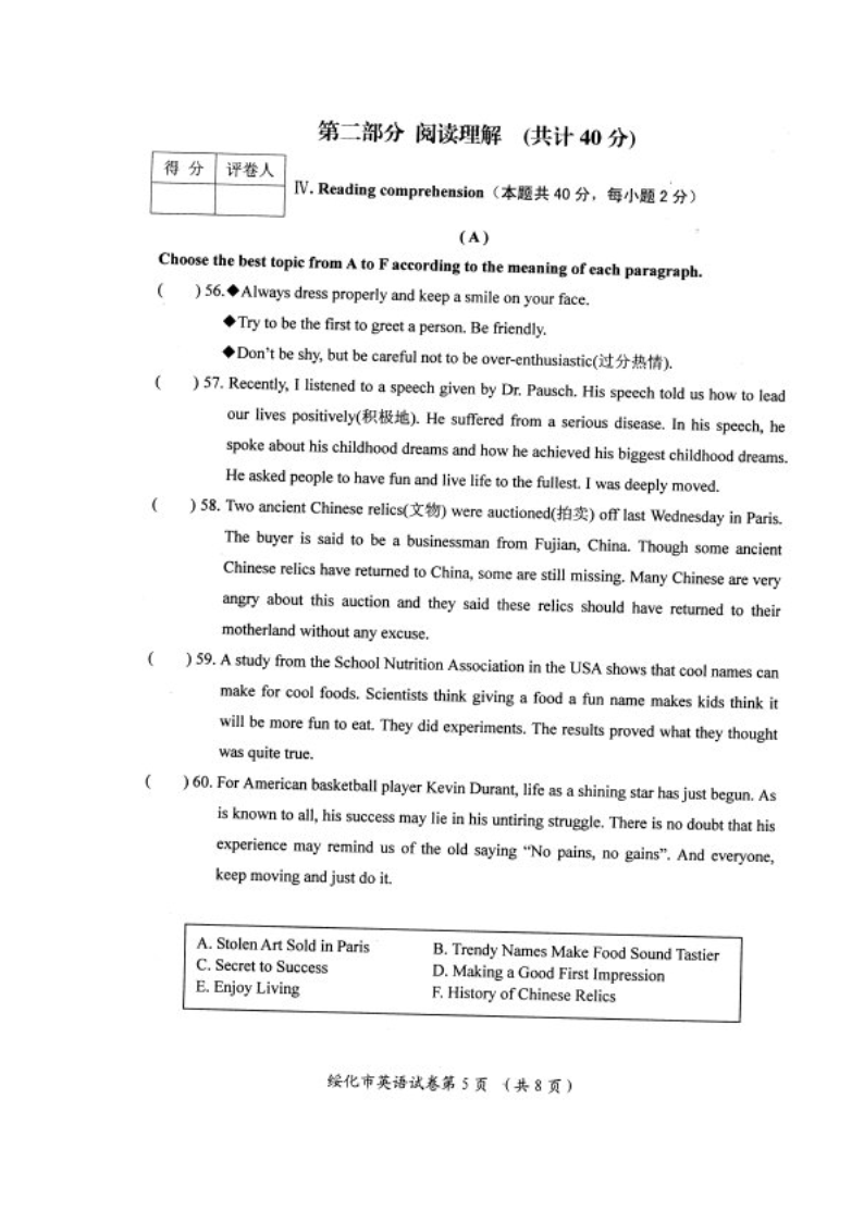 【文档预览】 无忧考网整理发布2012年黑龙江绥化中考英语真题及答案(图片版),前五页预览如下:
