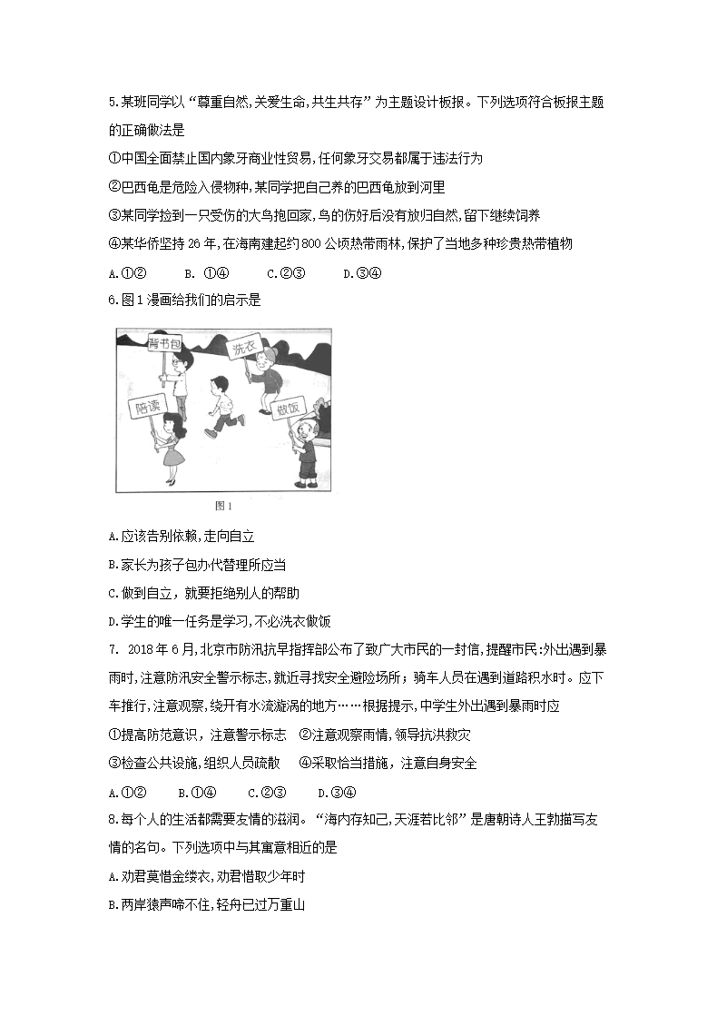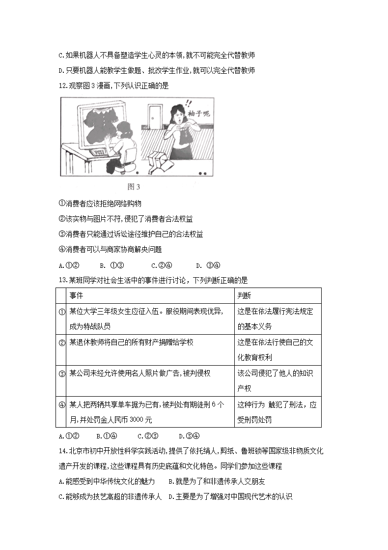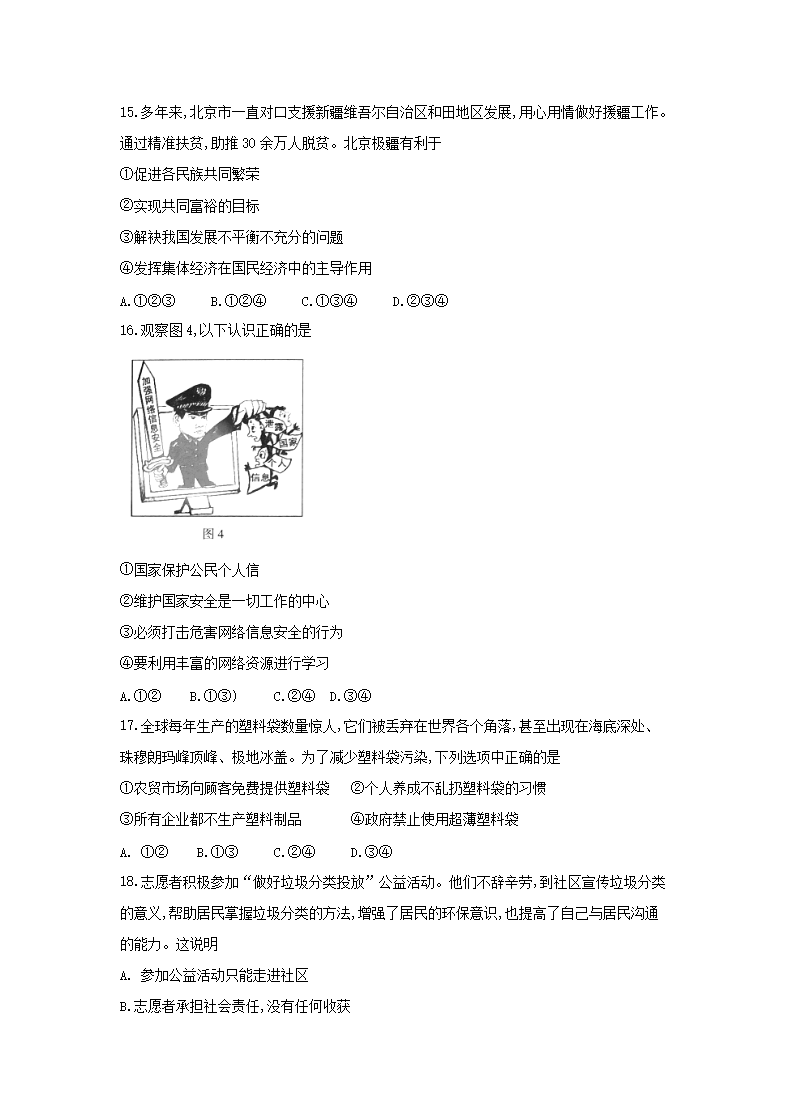 【文档名称】 2018北京延庆中考思想品德真题及答案(Word版).doc