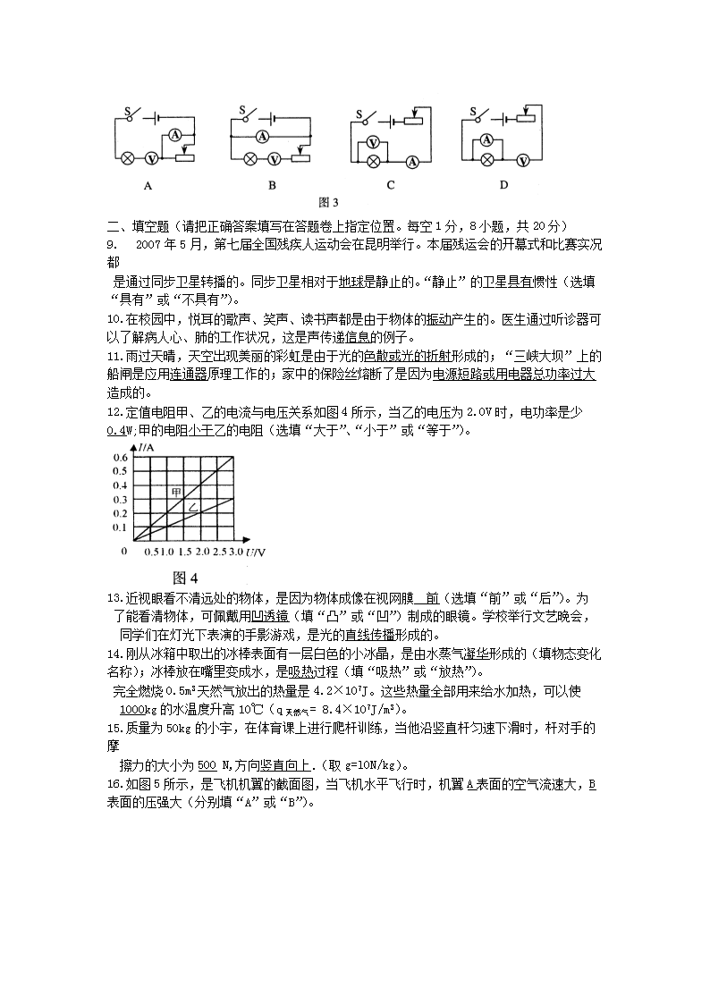 【文档名称】 2007年云南曲靖中考物理真题及答案(Word版).doc